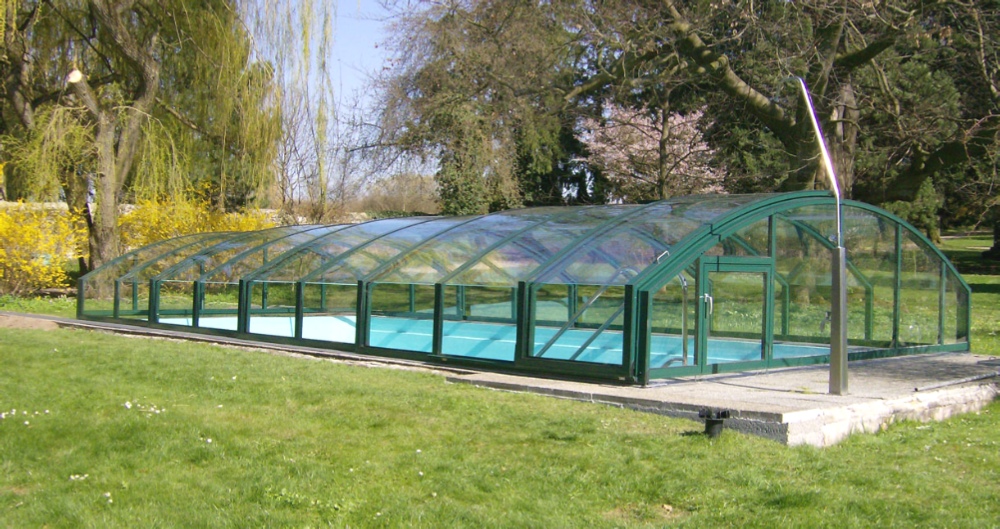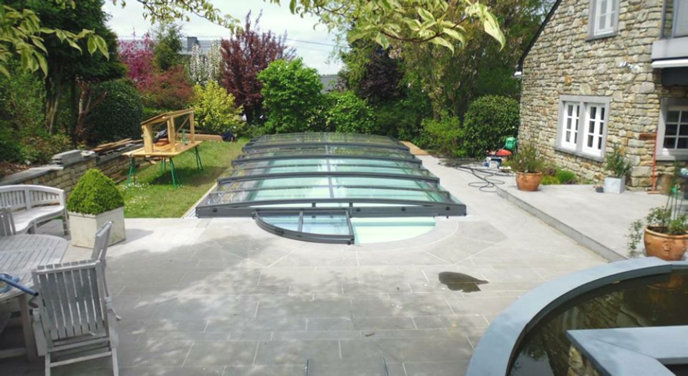 CARAT version basse et abri plat : l’abri de piscine bas angulaire coulissant