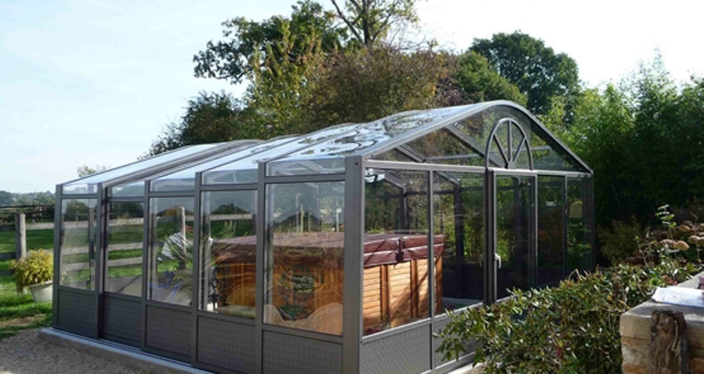L’abri de spa Nostalgie est un produit unique en terme de design et de look. Il n’existe pas construction coulissante similaire: manipulation rapide et aisée par une personne.